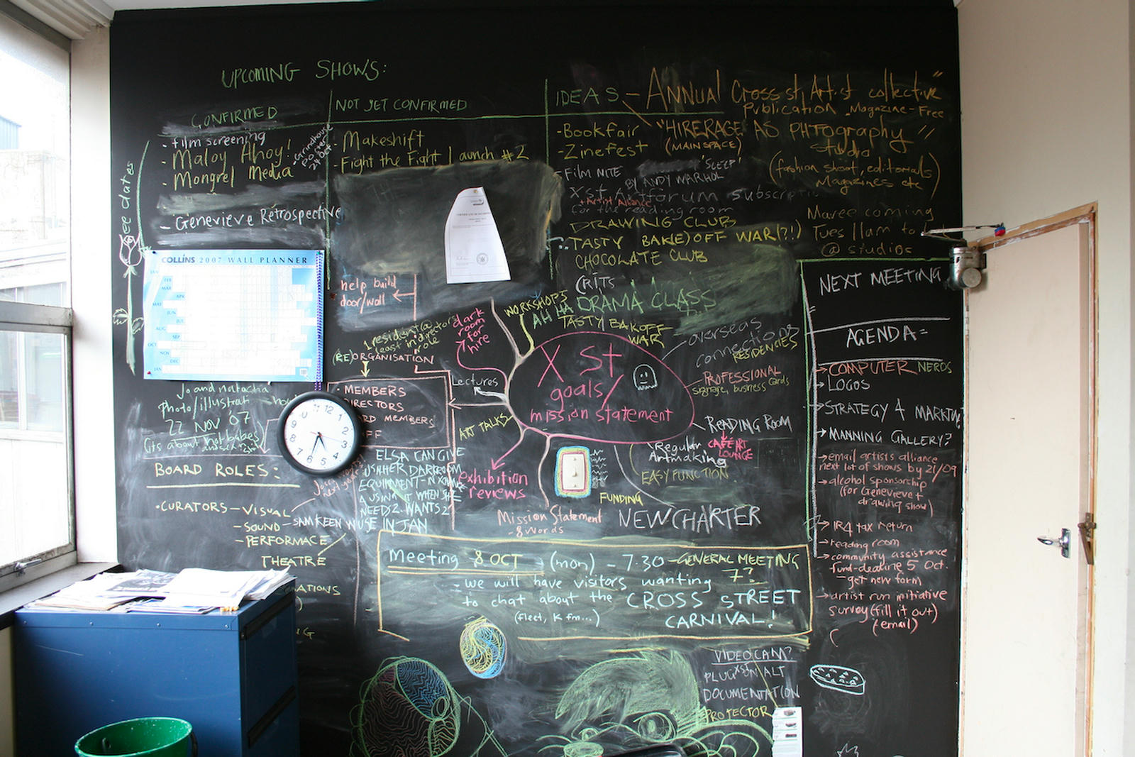 In 2007, Cross St Studios formalised its structure by becoming a registered charitable trust. The initial board members were Daniel Koene, Genista Jurgens, Haley Williams, Sean Monro and Veronica Manchego. By 2009, the trust’s board had evolved to comprise Mikel Krumins, Phill Dryson, Tessa Stubbing, AJ Thompson and Michael Williams.