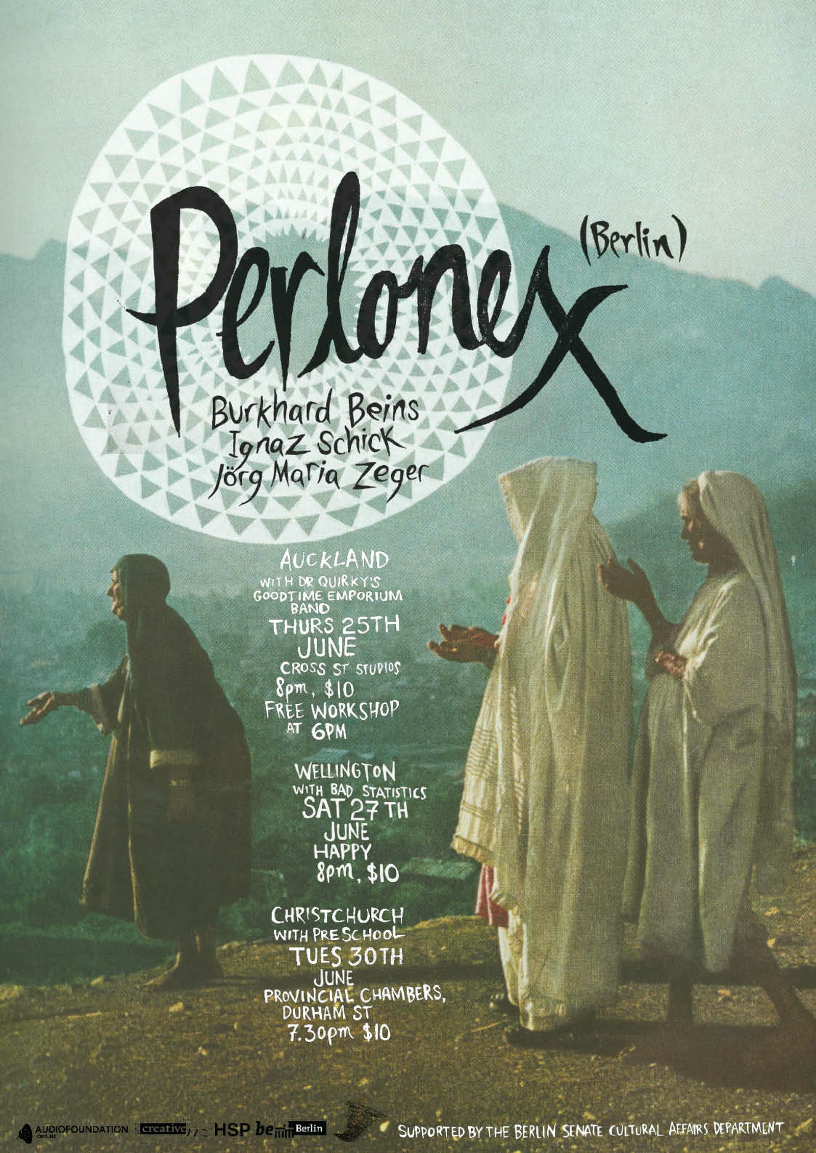 The event also included an artist's talk, open to the public, where Perlonex members Burkhard Beins, Jörg Hiller and Ignaz Schick discussed their experiences in improvised music. This tour was presented in association with the Audio Foundation and High Street Project.