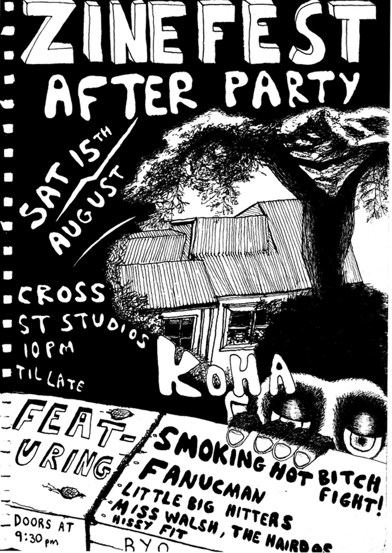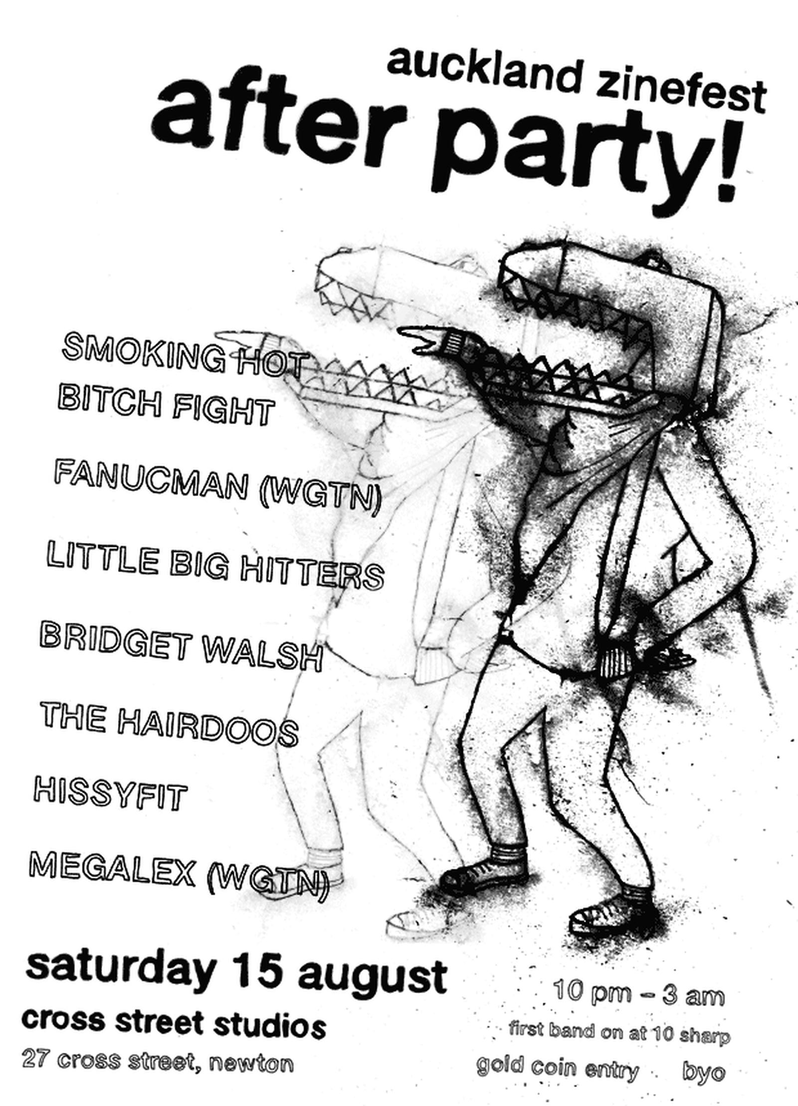 The Auckland Zinefest is an annual community event, established in 2009 by Cross St Studios collective members Nicholas J. Boyd and Tessa Stubbing, dedicated to promoting self-publishing in Aotearoa New Zealand. Featuring stalls, educational workshops, talks, film screenings and awards, the inaugural festival in 2009 created the structural foundation for all iterations that followed.