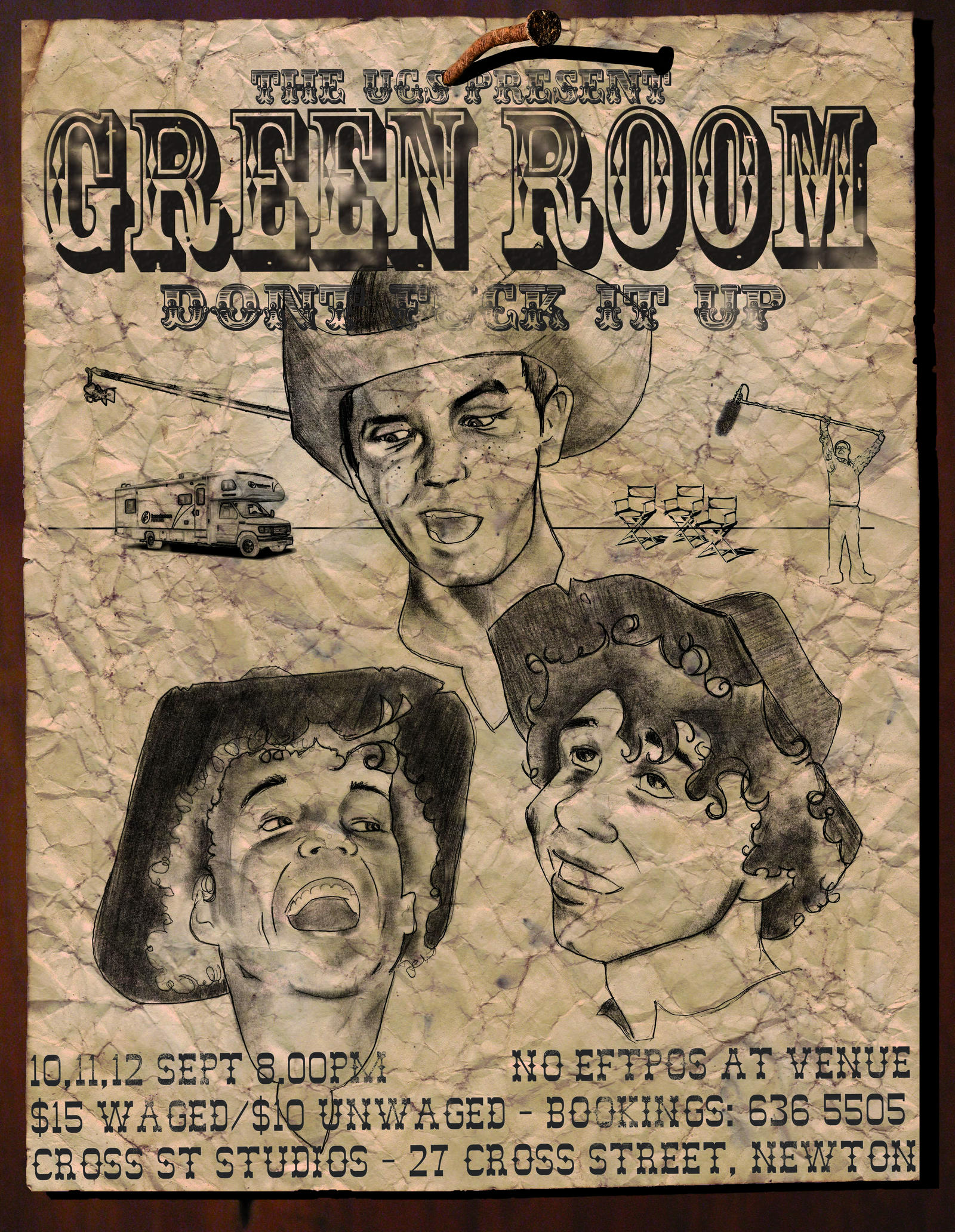 Green Room was a play that followed three young, hopeful actors hired as extras on an American feature film shooting in Tāmaki Makaurau Auckland.