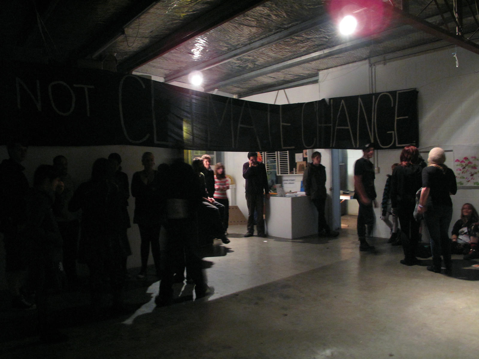 Organised by Nigel Parkinson, this all-ages, no-alcohol benefit show raised funds for Climate Camp Aotearoa, the group preparing to host a protest camp in Te Whanganui-a-Tara Wellington during the UN Climate Change Conference (COP 15) in Copenhagen that December.
