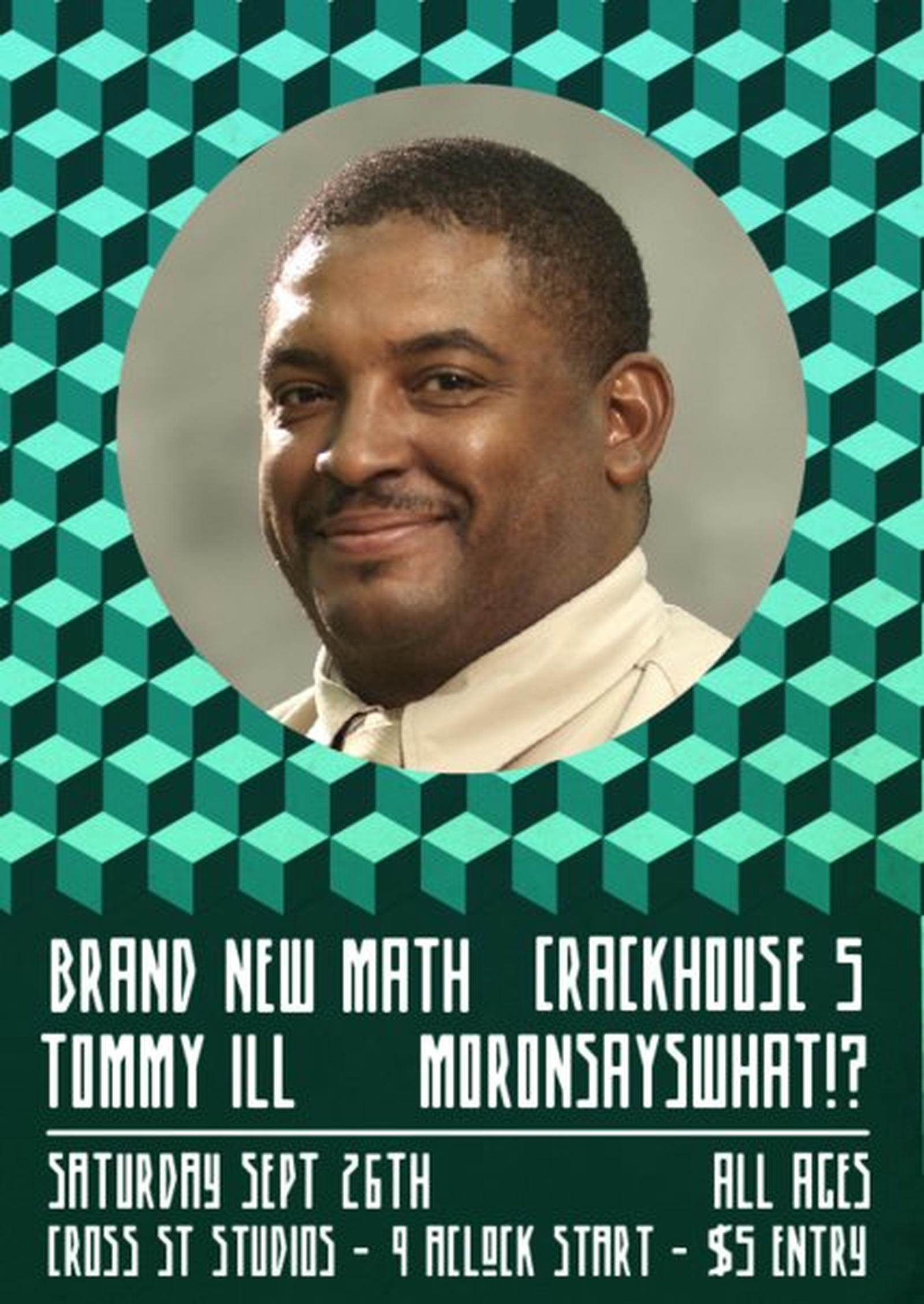 Organised by Kelvin Neal (47 Diamantes, Holiday with Friends), this was a special, all-ages gig with a cross-city lineup of musicians from Tāmaki Makaurau Auckland and Te Whanganui-a-Tara Wellington: Brand New Math, Crackhouse 5, rapper Tommy Ill and Moron Says What?!?!—marking the latter's fourth performance at Cross St Studios.