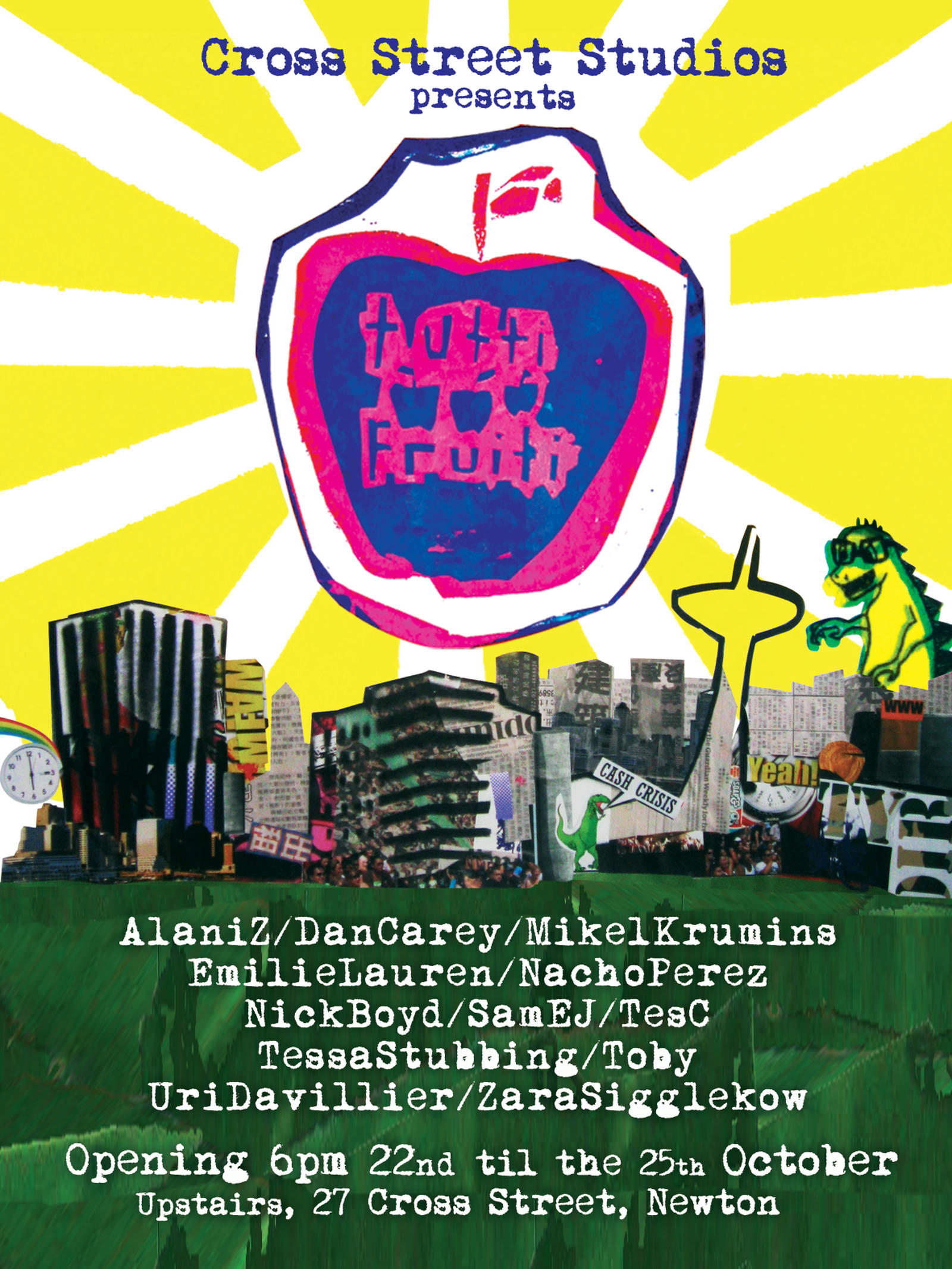 Tutti Fruiti was a four-day, collaborative exhibition by members of the Cross St Studios collective and friends, which focused on resourceful, DIY processes of art-making: upcycling materials, screen printing, papermaking and collage.