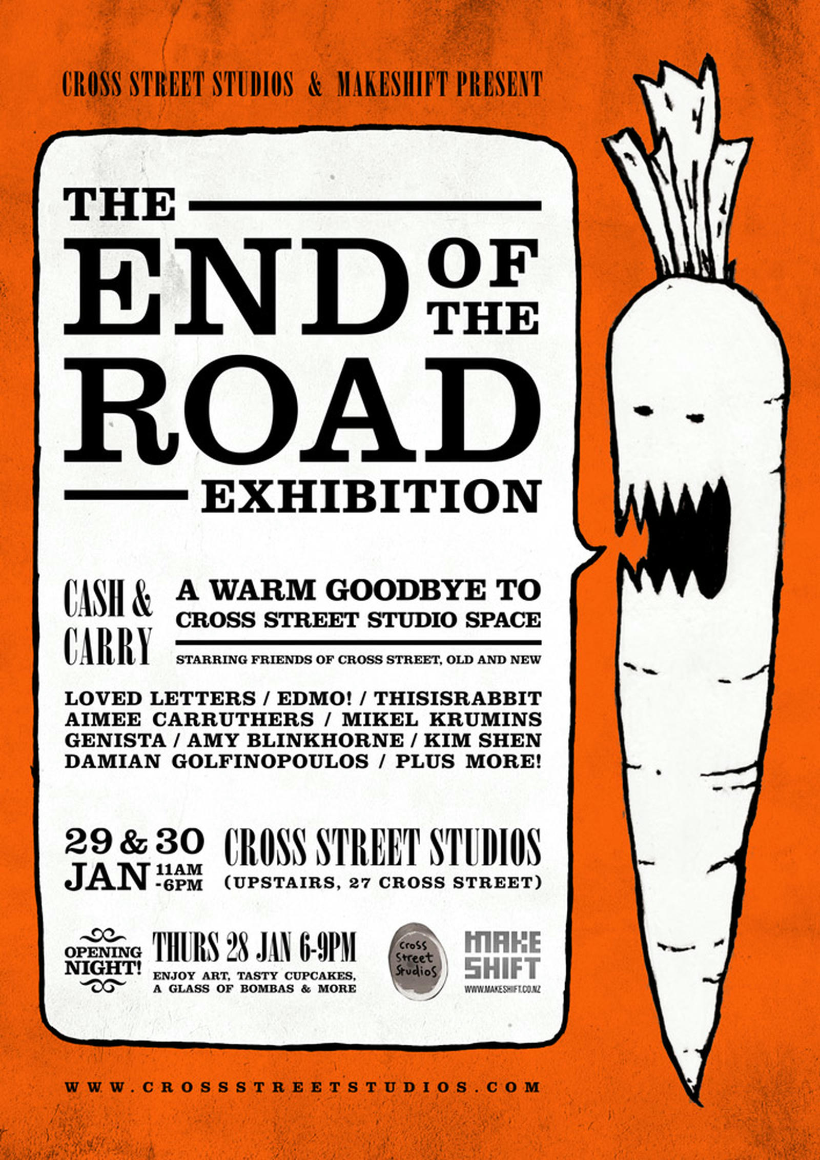 Jointly curated by Tessa Stubbing (Cross St Studios) and Steven Lyons (Makeshift), End of the Road was the last ever exhibition for the artist-run initiative.