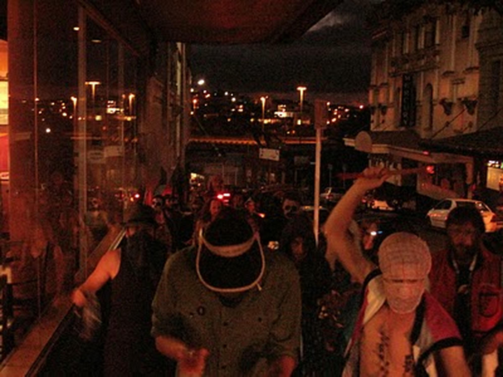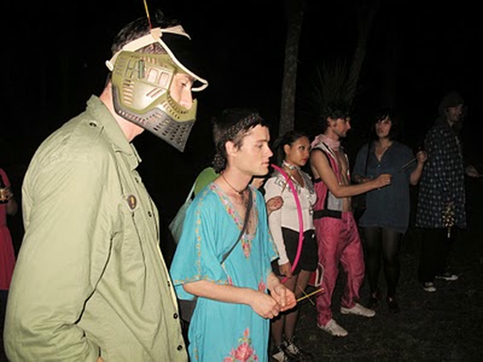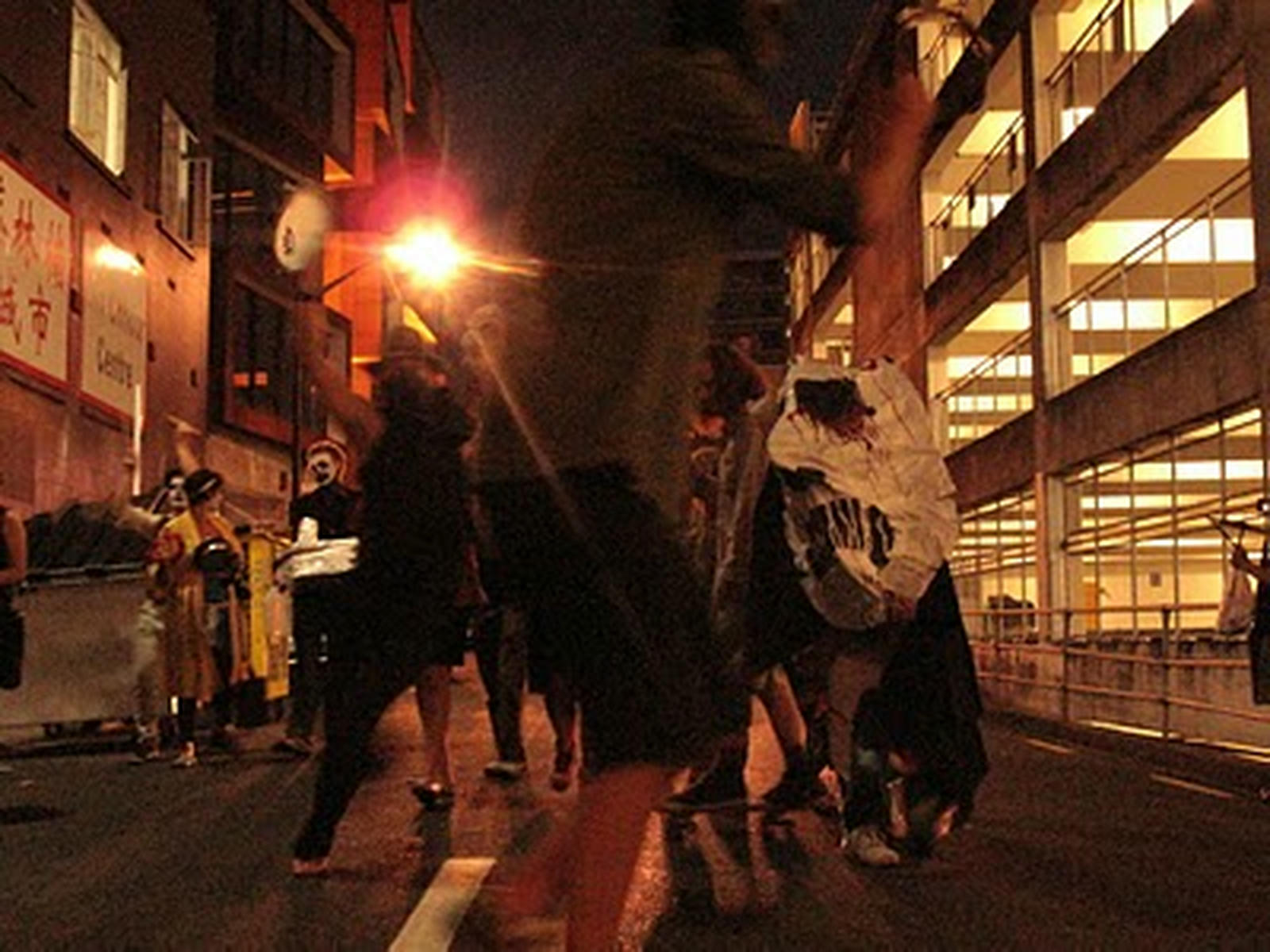 In keeping with the collective's ethos of community involvement, this participatory ritual invited close friends to wear costumes and bring any instrument or noise-making device for a festive procession along Cross Street, up Karangahape Road and into the Symonds Street graveyard for the final interment.