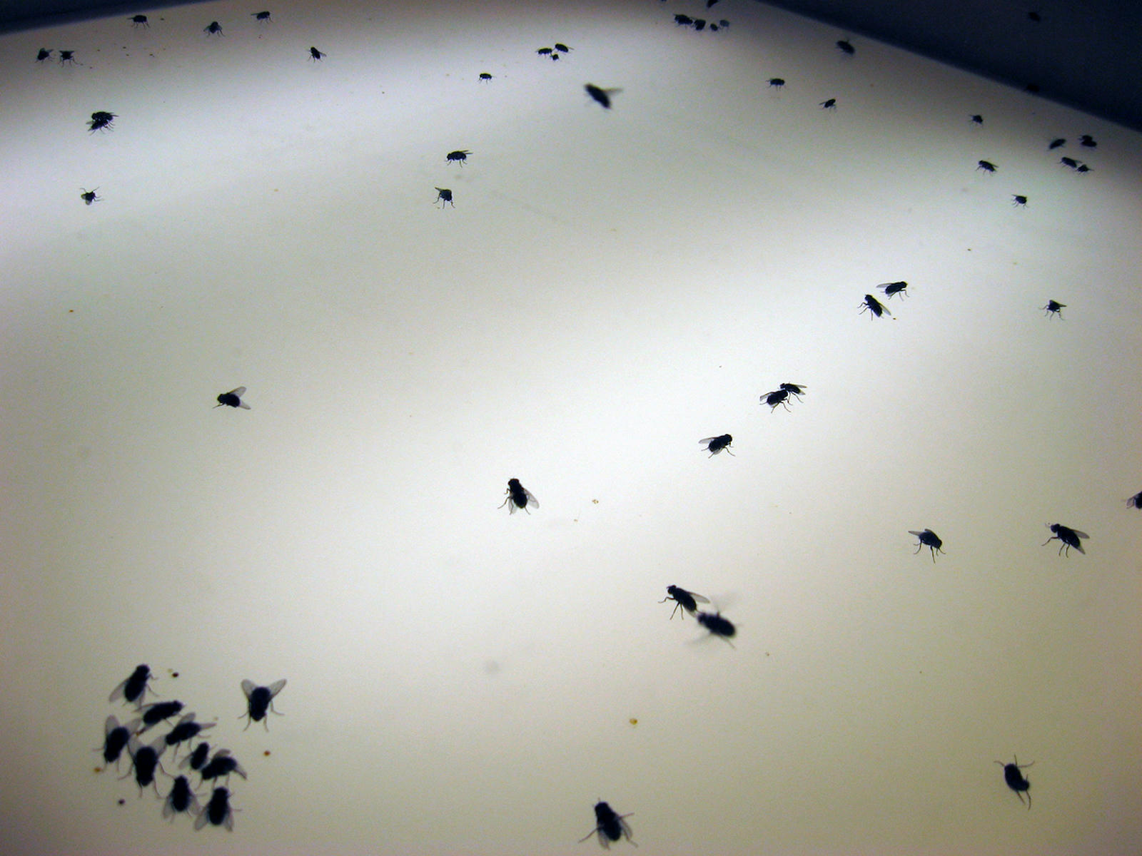Aiming to challenge societal norms and the audience’s sense of comfort, the show utilised interactive, time-based and kinetic elements, subverting everyday items. Highlights included re-configured domestic appliances, an unsettling stop-motion projection of flies, a sealed light table containing live flies, and humorous promotional material plastered around the neighbourhood.