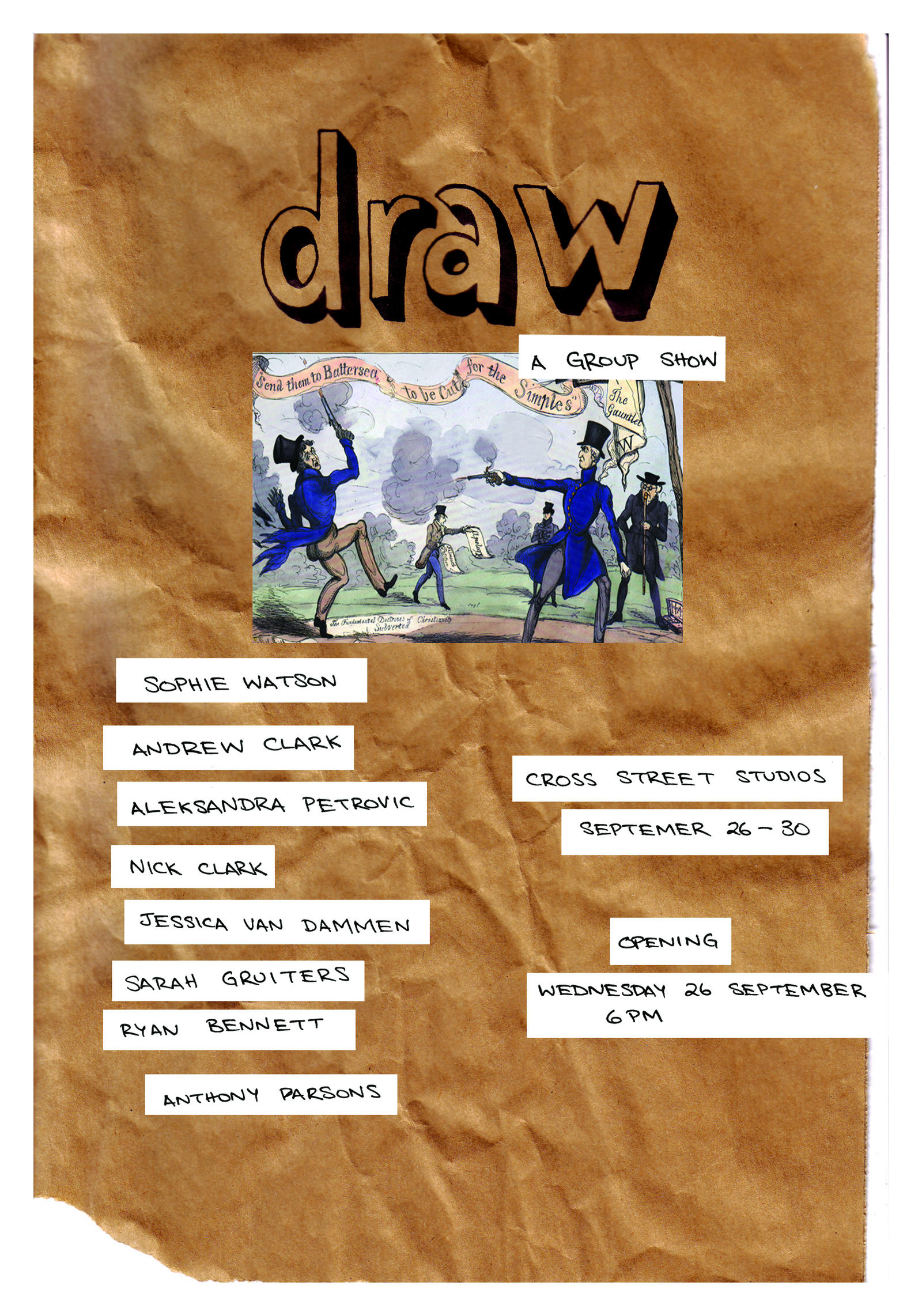 Curated by Aleksandra Petrovic, draw was a group exhibition featuring eight young artists who explored the versatile practice of drawing; as an idea-gathering tool, an exploration of technique or narrative, and as a medium in itself.