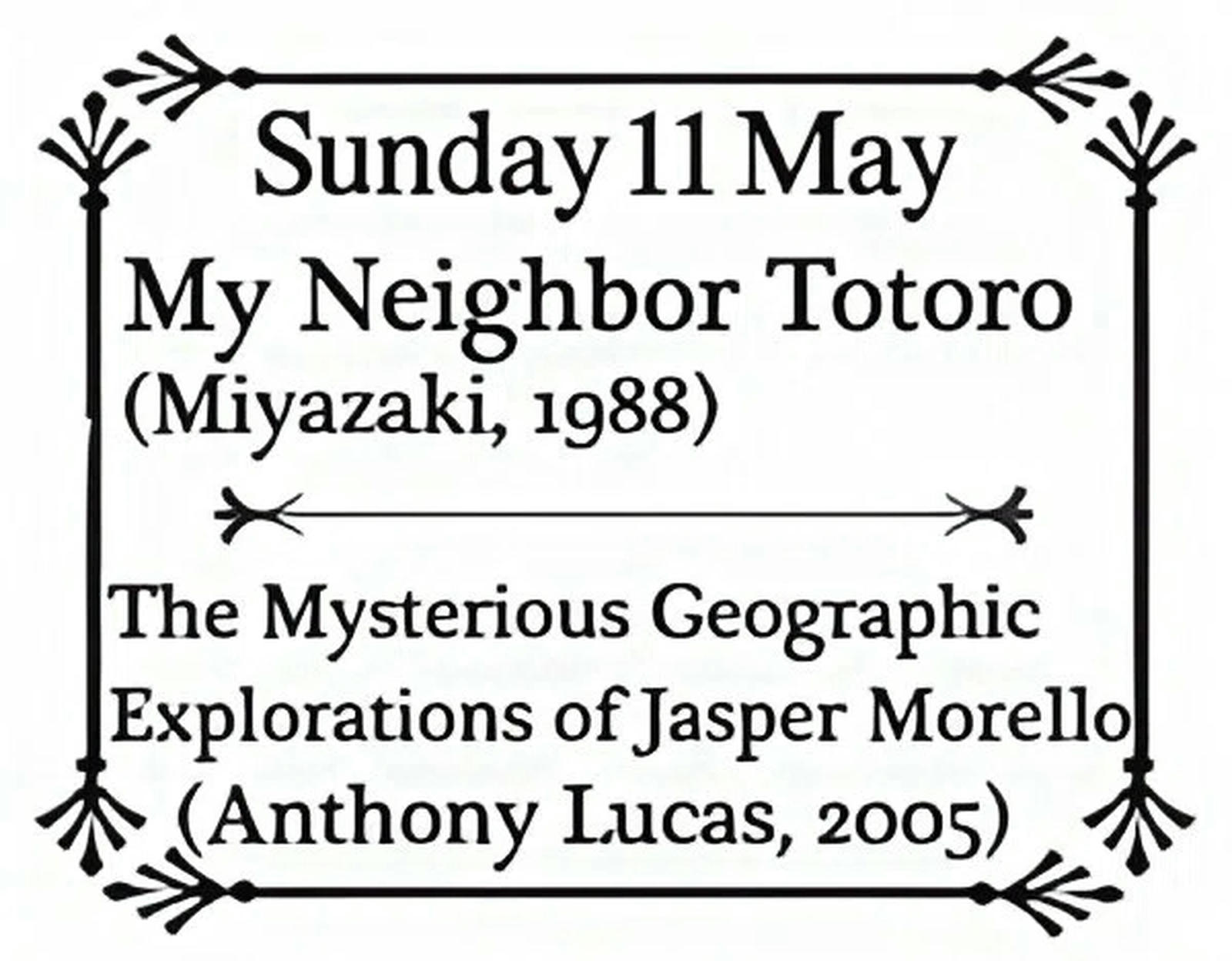 The screening included Hayao Miyazaki’s classic, My Neighbor Totoro (1988), which tells the story of two young sisters who discover friendly forest spirits in their new rural home, and was followed by Anthony Lucas’ animated short, The Mysterious Geographic Explorations of Jasper Morello (2005), a blend of Gothic horror and steampunk aesthetics featuring dirigibles, a Victorian city and a tragic hero.