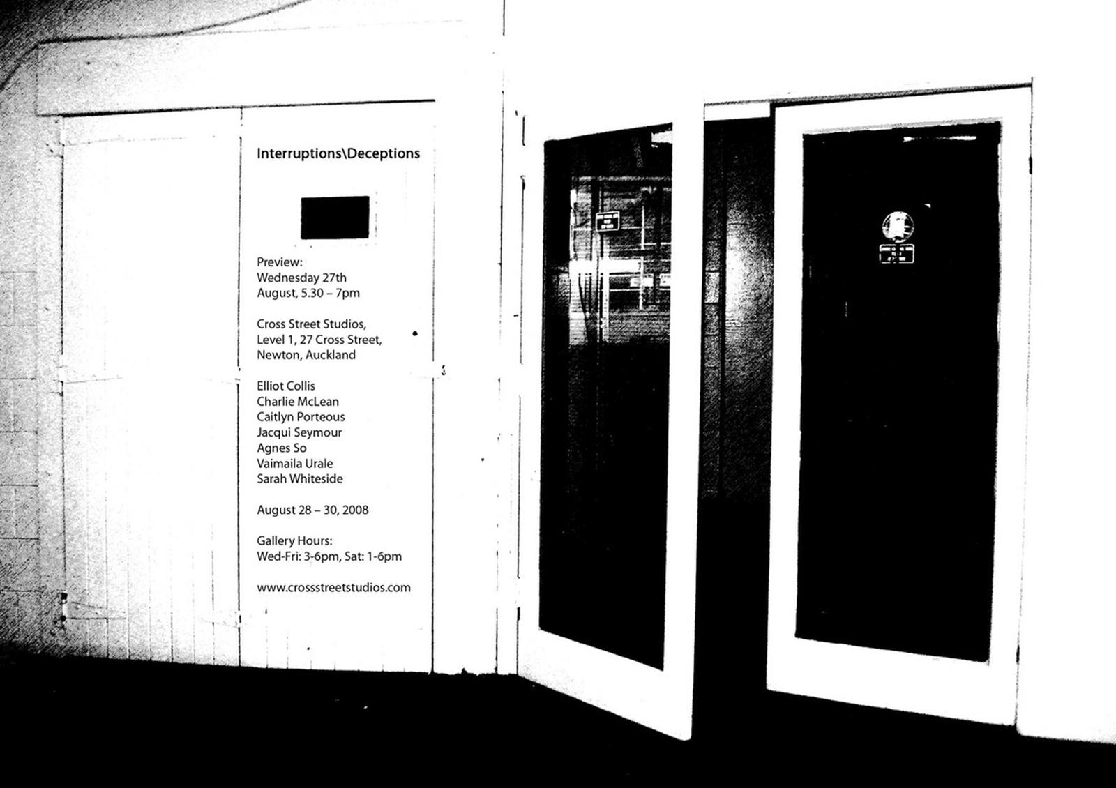 Interruptions | Deceptions was the third of five exhibitions in a three-year partnership between Cross St Studios and AUT. Through this collaboration, students gained the unique opportunity to showcase their work in a public context, connecting with a wider arts community and gaining exposure free from the financial pressure of commercial galleries.