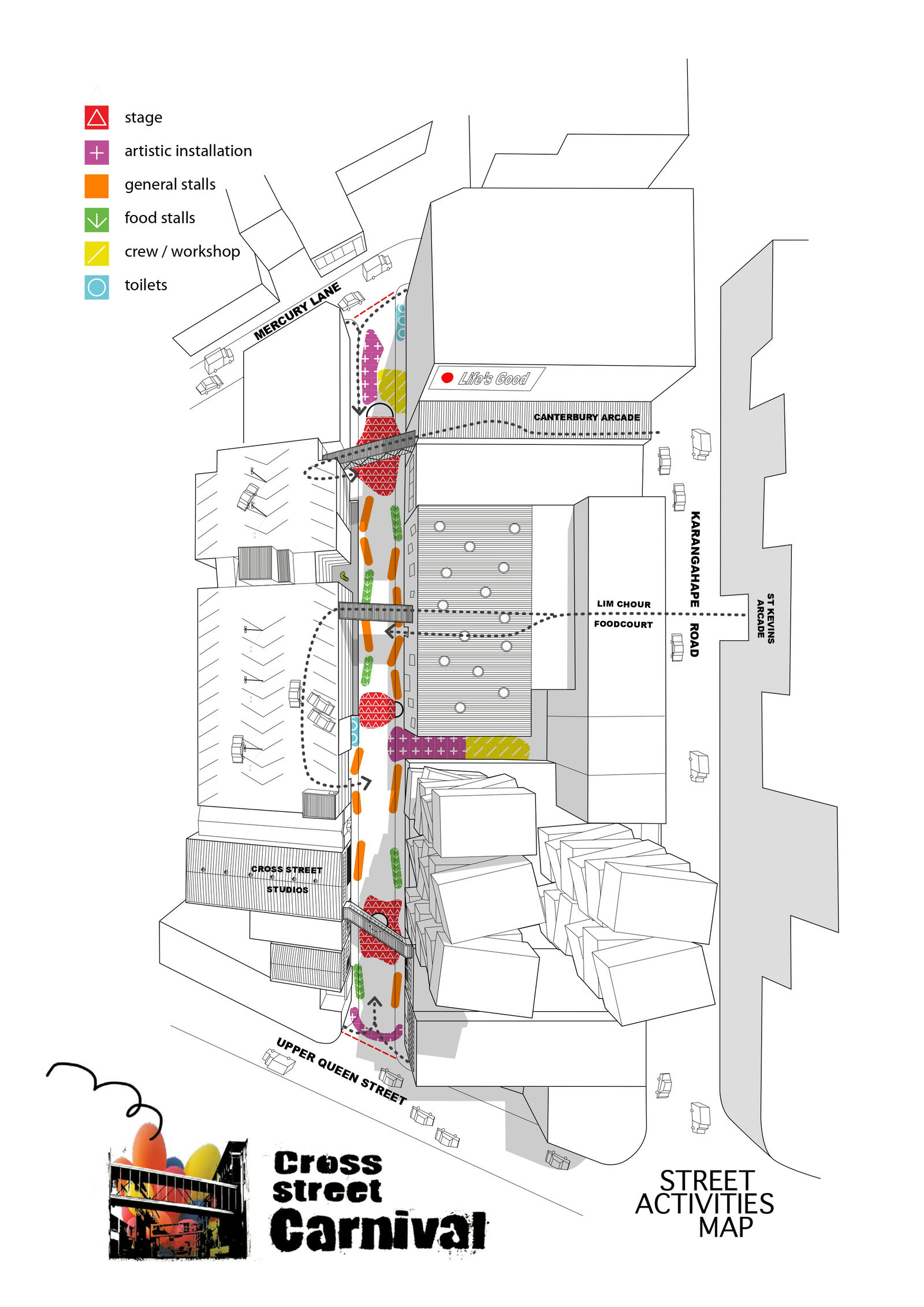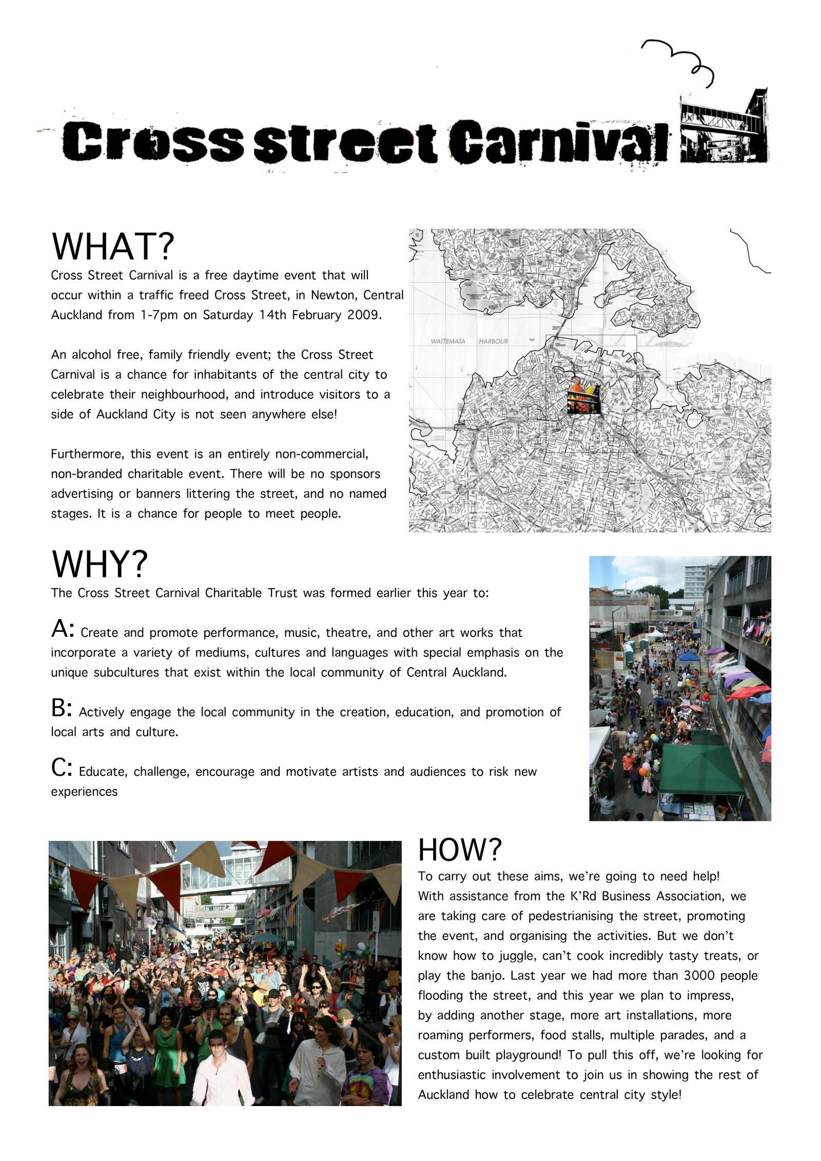 The Cross Street Carnival was made possible with support from the K Road Business Association, Auckland City Council, K FM, Pull Bar and First Scene.
