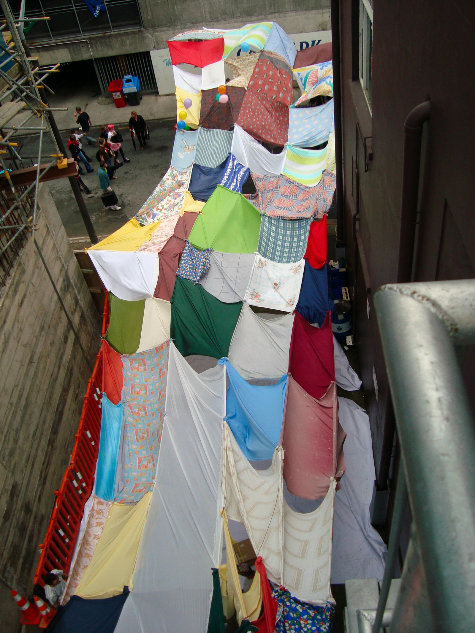 Blending the spontaneity of a Mardi Gras with the communal spirit of a country fair, this year’s free, non-commercial outdoor party was held under a giant bed-sheet canopy stretched overhead, designed by architect Jun Tsujimoto.