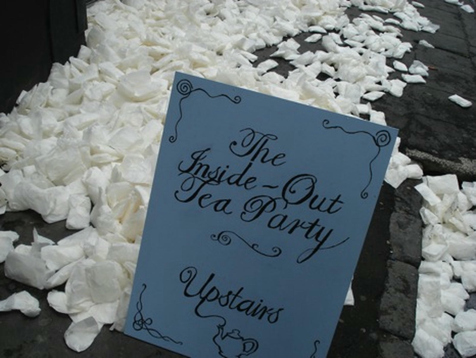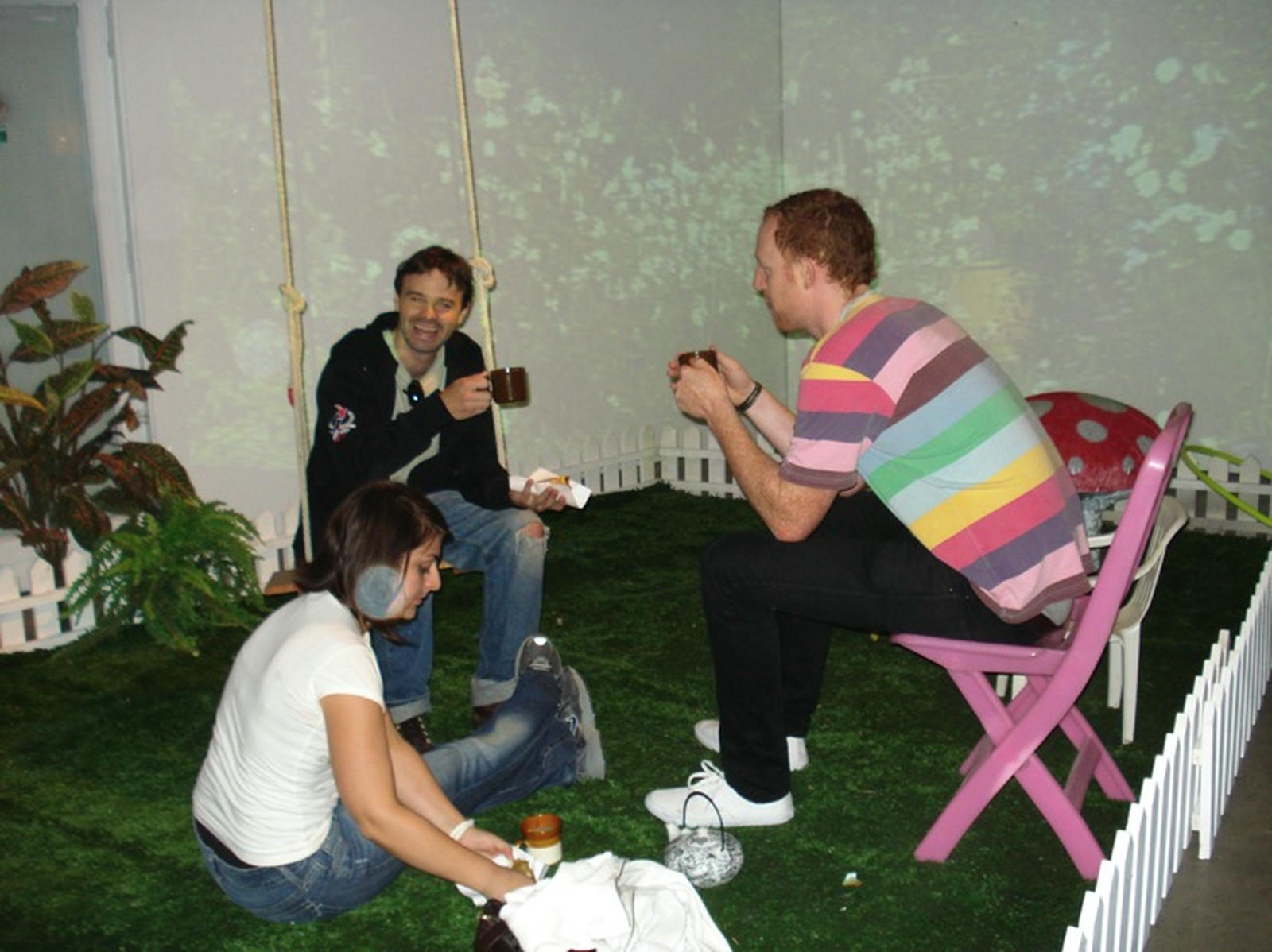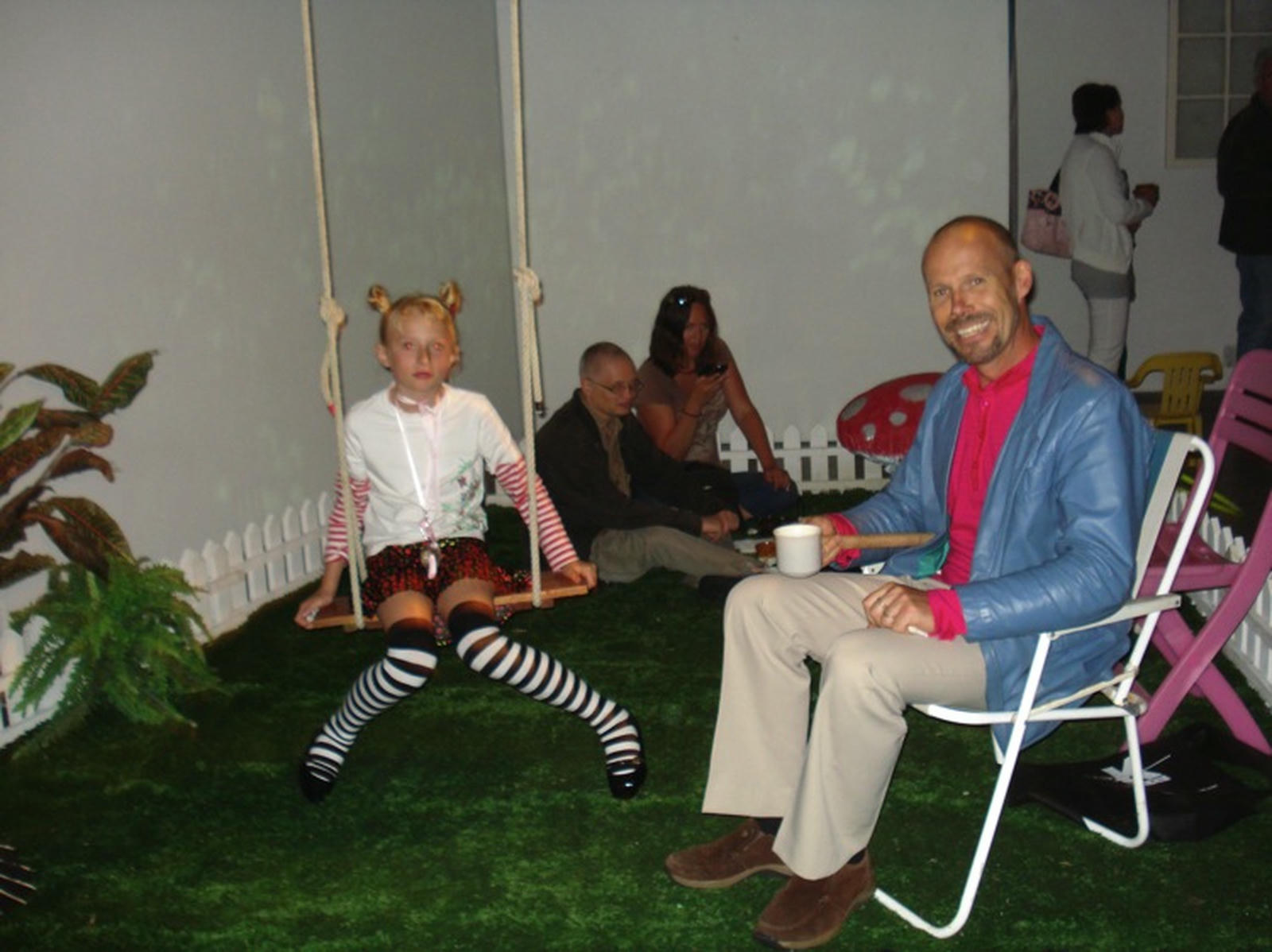 Upstairs in Cross St Studios, the Inside Out Tea Party offered a respite from the festivities; the entire gallery transformed into an Alice in Wonderland-type setting with oversized paper mâché mushrooms and an indoor swing, where visitors could sip cups of tea provided by the collective.