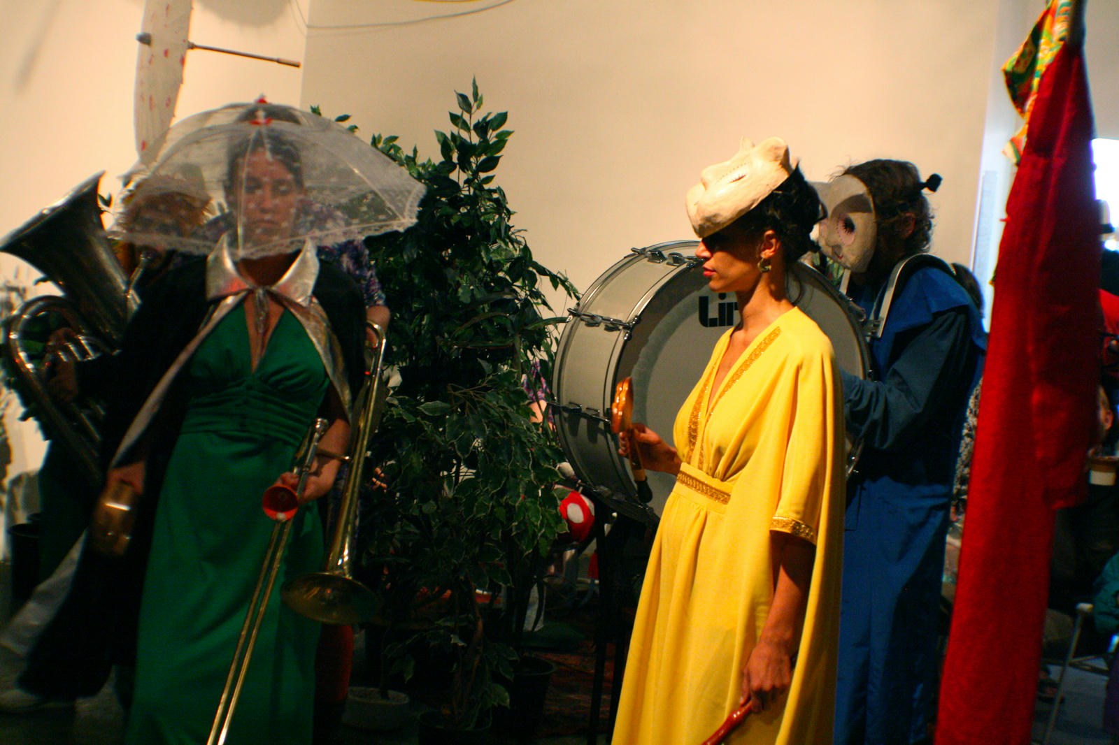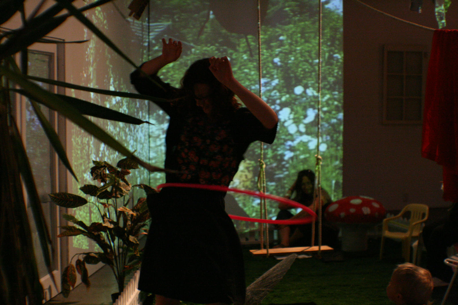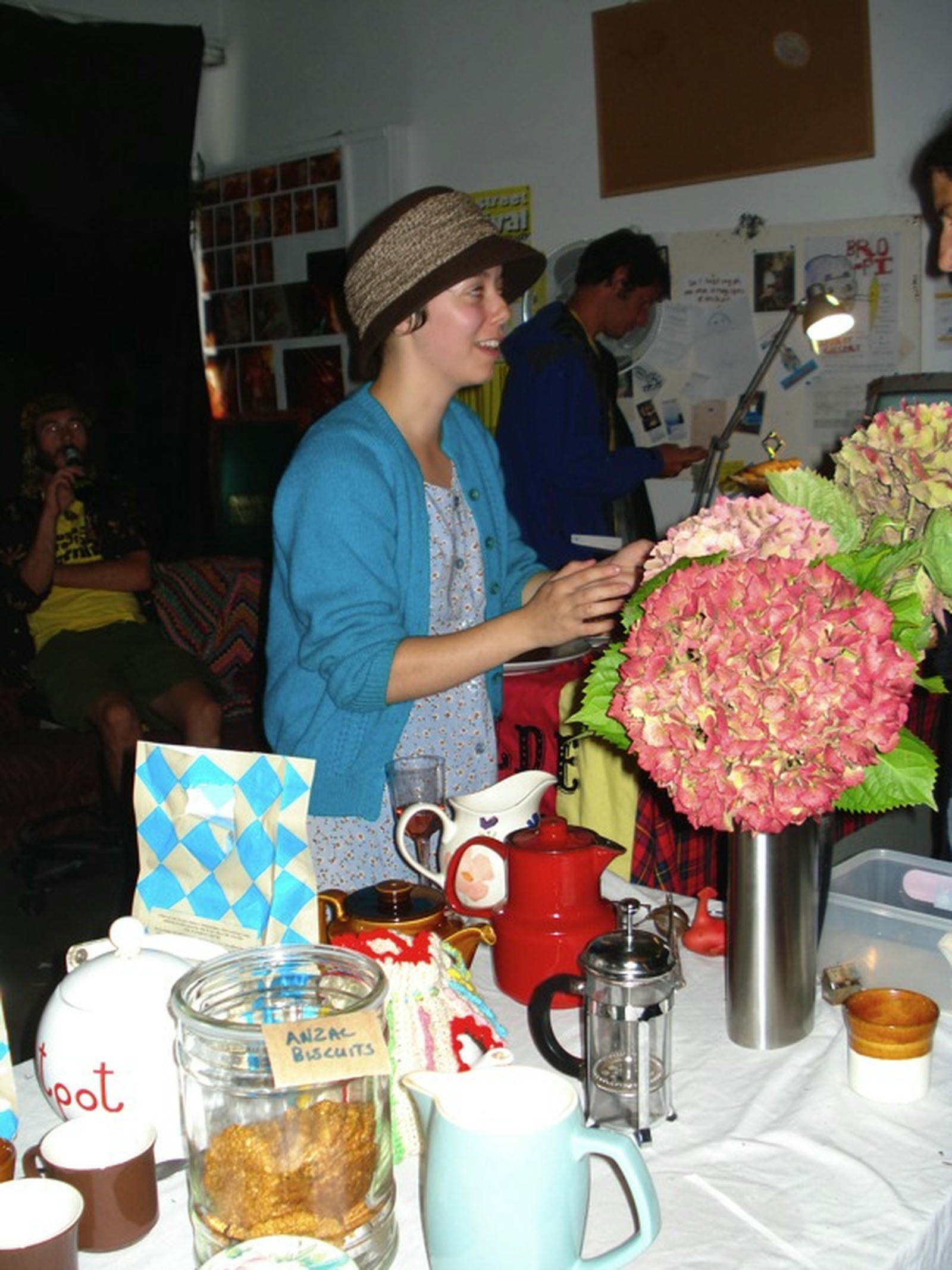 Upstairs in Cross St Studios, the Inside Out Tea Party offered a respite from the festivities; the entire gallery transformed into an Alice in Wonderland-type setting with oversized paper mâché mushrooms and an indoor swing, where visitors could sip cups of tea provided by the collective.