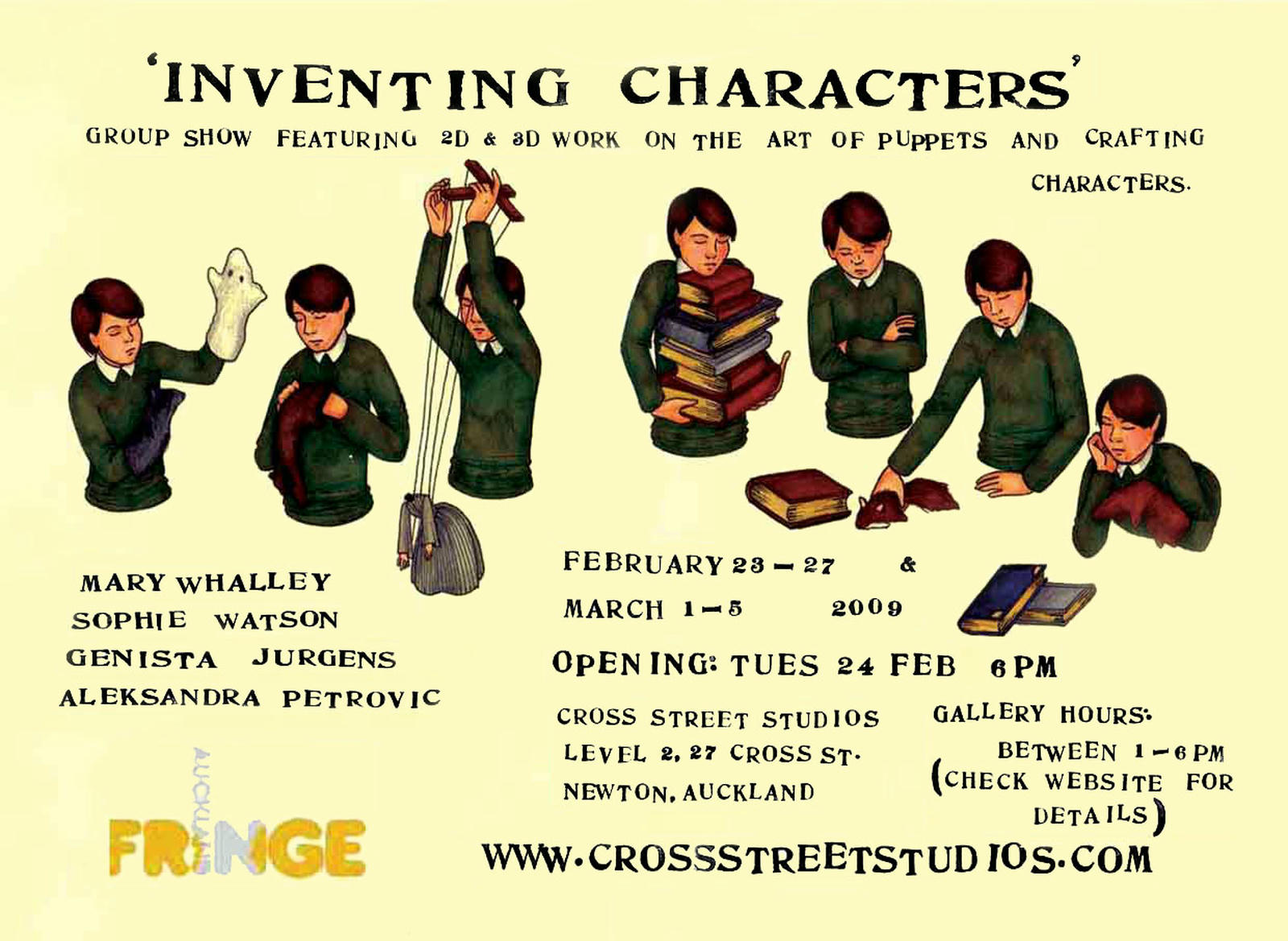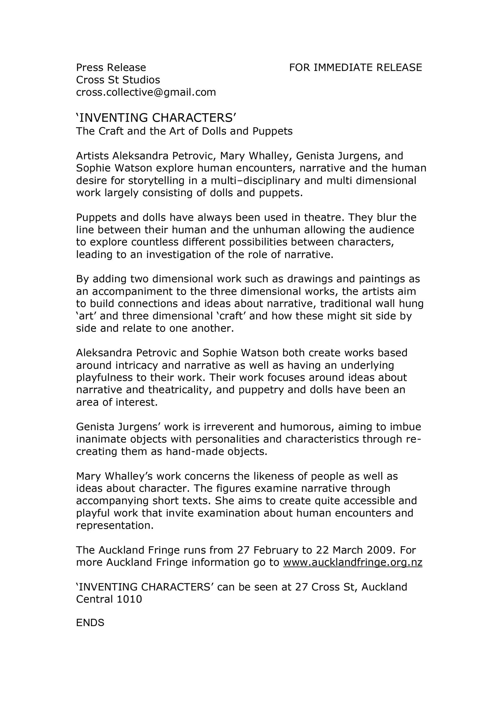 Curated by Aleksandra Petrovic, Inventing Characters was a group exhibition focused on character creation and storytelling, primarily through the art of puppetry, dolls and 2D works.