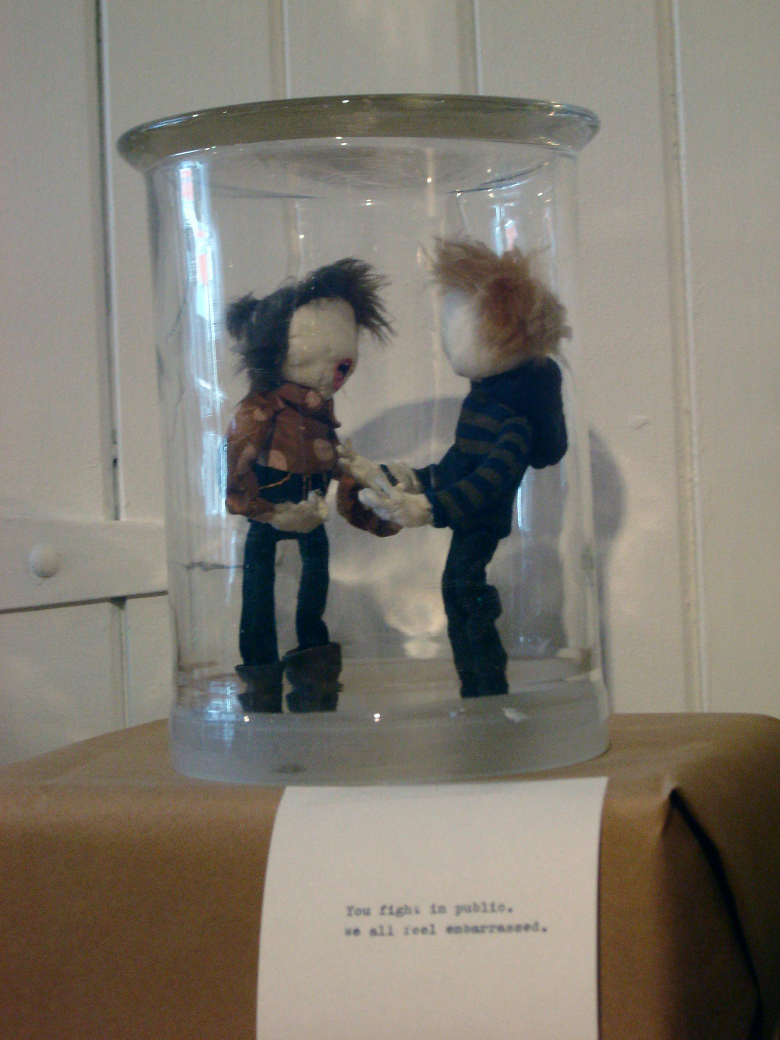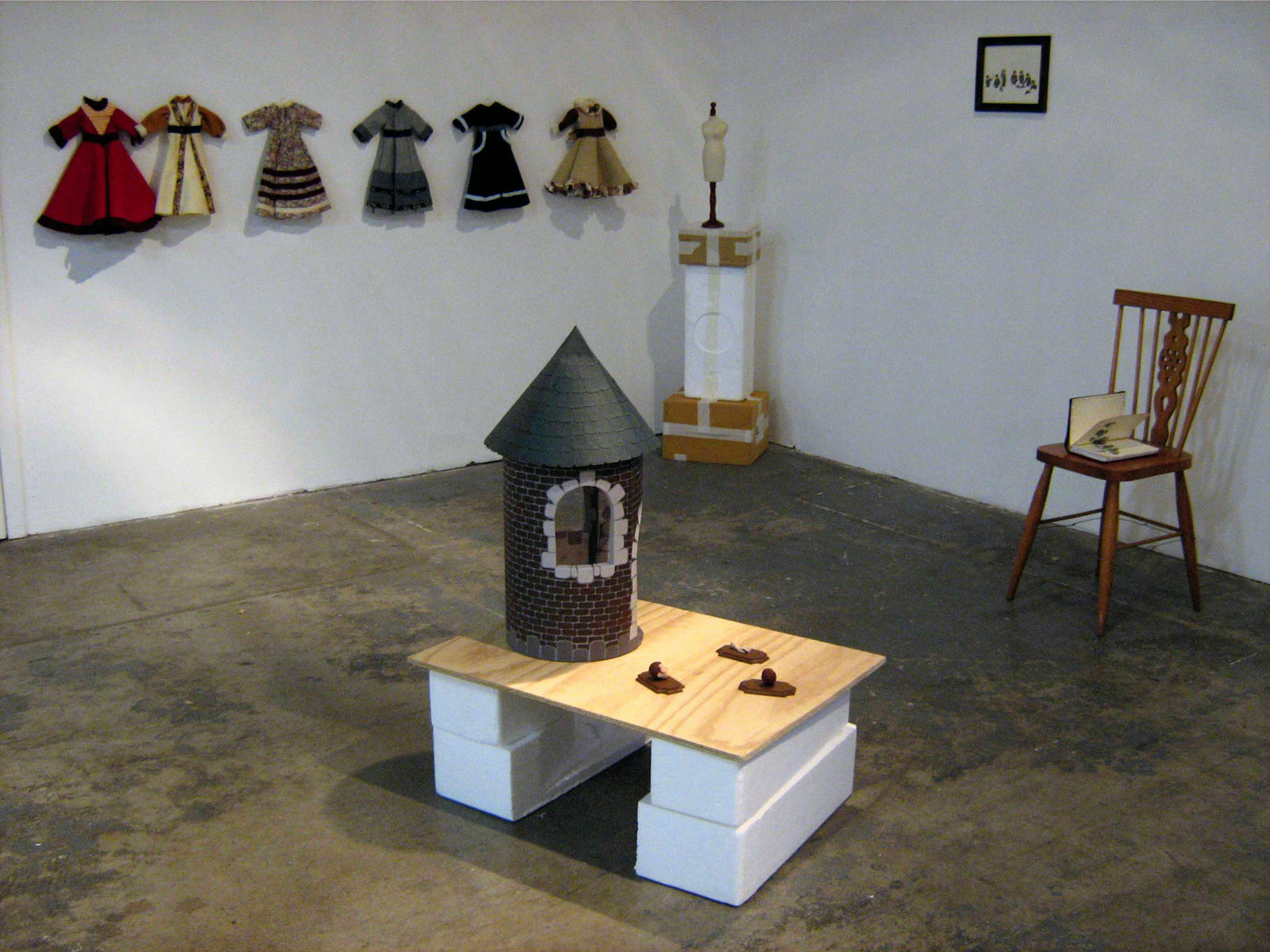 Featuring exclusively handmade objects that deliberately blurred the lines between fine art and craft, the narrative-driven exhibition was filled with intimate, whimsical and complex vignettes. These included small-scale sculptural installations, meticulously fashioned dolls and humorous drawings of anthropomorphic figures.